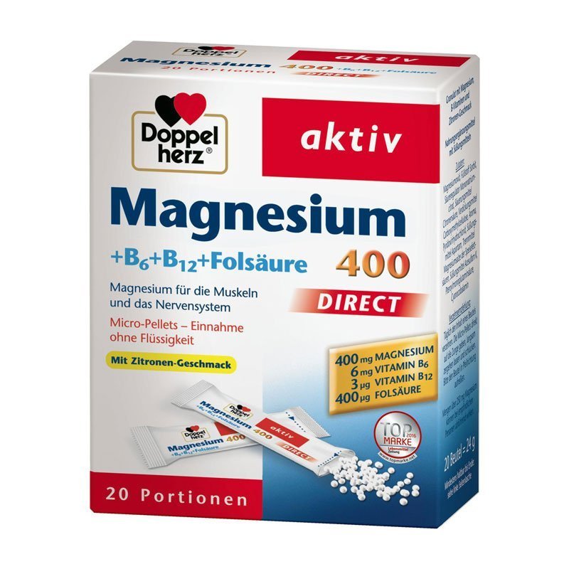 Magneziumi është një mineral esencial të cilin trupi nuk mund ta prodhojë vetë. Gjithashtu ruajtja e sasive të magneziumit nga organizmi është e limituar. Ushqimet e përpunuara të cilat konsumohen gjerësisht sjellin shpeshherë nivele jo optimale të magneziumit në organizëm. Gjatë gatimit të ushqimit një pjesë e sasisë se magneziumit humbet. Gjithashtu përdorimi i rregullt i alkolit sjell largim të magneziumit nga organizmi. Burime shumë të mira të magneziumit janë: perimet, leguminozet, peshku, mëlçia etj. Magneziumi ndihmon në metabolizimin normal të energjisë dhe në funksionet normale të sistemit nervor dhe muskujve. Bustinat Doppelherz përmbajnë Magnezium në një kombinim me vitaminat B6, B12 dhe acid folik.