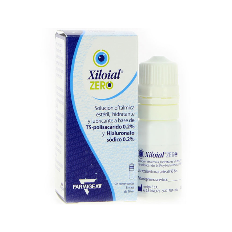 Solucion steril për sy, pa konservantë, i indikuar në trajtimin e syrit të thatë. Xiloial Zero është i këshilluar për një qetësim të shpejtë e të menjëhershëm si dhe për një mbrojtje të sipërfaqes së kornesë nga djegiet, skuqjet, irritimet për shkaqe fizike të mjedisit (erës, ekspozimit të zgjatur në diell, tymit të cigares, ajrit të thatë) ndaj stresit vizual ose faktorët mekanikë (lentet e kontaktit, operacioni i syrit). Produkti mund të përdoret në prani të lenteve të kontaktit, duke pasur parasysh mungesën e ruajtësve në formulim. Aplikoni një pike në sy disa herë gjatë ditës. Prisni të paktën 10-15 minuta para se të aplikoni një solucion tjetër për sy. Pas hapjes mund të përdoret brenda 90 ditëve.