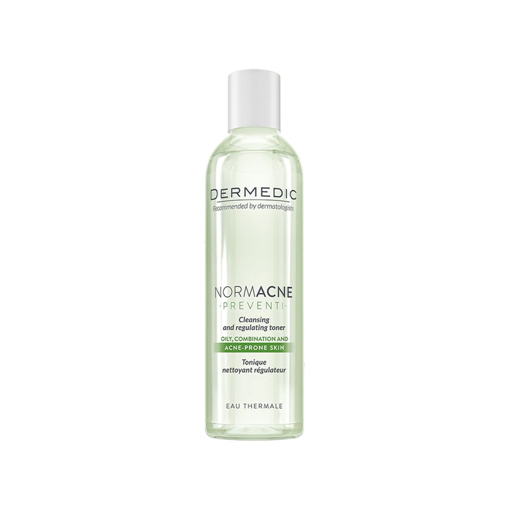 Normacne Tonik rregullues antibakterial nga Dermedic rekomandohet për pastrimin e përditshëm të lëkurës së kombinuar dhe asaj të yndyrshme me tendencë akneike. Përbërësit aktivë: Acid salicilik, ujë mështekne, AC.NET, glicerinë. Përdoreni në mëngjes dhe në mbrëmje. Aplikoni tonikun me një disketë pambuku në fytyrë të pastër.