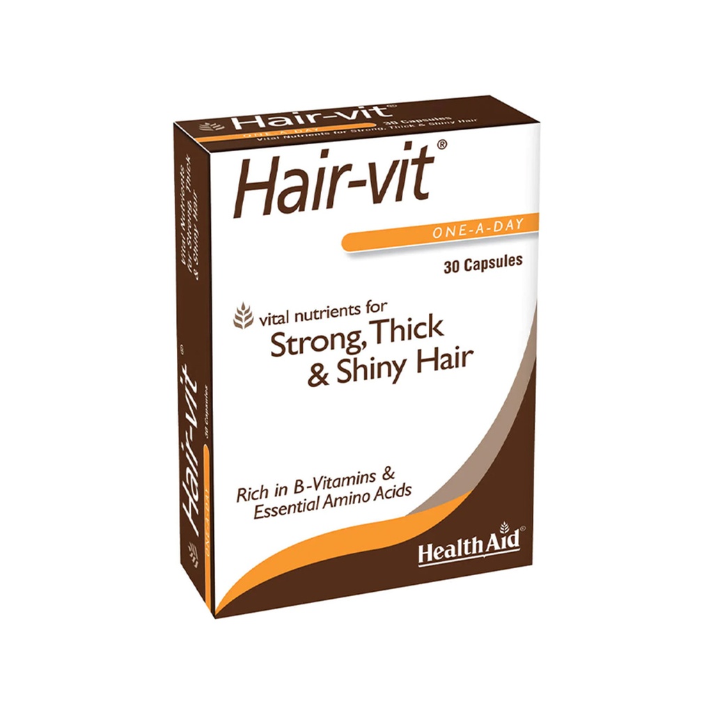 Hair-vit Flokët tuaj mund të jenë të brishtë dhe të dëmtuar për një sërë arsyesh, nga problemet shëndetësore deri te dëmtimet mjedisore nga dielli. Ka disa arsye pse flokët tanë fillojnë të humbasin karakteristikat e tyre të shëndetshme; Dieta e dobët, kushtet mjekësore, luhatjet hormonale, stresi fiziologjik ose emocional mund të kontribuojnë në rënien e tyre. Mungesa e vitaminave dhe mineraleve mund të jetë shkaku i flokëve jo të shëndetshëm. Hair-vit është formuluar me kujdes për të plotësuar dietën tuaj të shëndetshme me vitamina dhe lëndë ushqyese thelbësore për të përmirësuar shëndetin e flokëve. Kapsulat Hair-vit® përmbajnë L-Cisteinë dhe Metioninë, të cilat ndihmojnë në prodhimin e keratinës. Keratina është një proteinë natyrale që i jep flokëve forcë dhe shkëlqim. Zinku ndihmon në nxitjen e rritjes dhe riparimit të flokëve, si dhe rregullon prodhimin e yndyrës rreth folikulave të flokëve, duke siguruar shkëlqimin e flokëve të shëndetshëm. Për çfarë janë kapsulat Hair-vit? Udhëzime mbi përdorimin Të rriturit dhe fëmijët mbi 16 vjeç: një kapsulë në ditë me mëngjes. Mos e tejkaloni dozën e rekomanduar ditore nëse nuk këshillohet nga një person i kualifikuar.